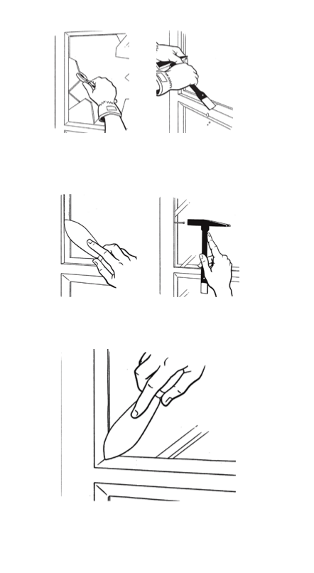 2. Utiliser une pince universelle pour casser et arracher les petits morceaux de vitre du pourtour de la fenêtre.